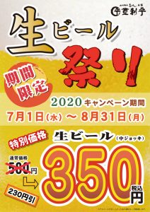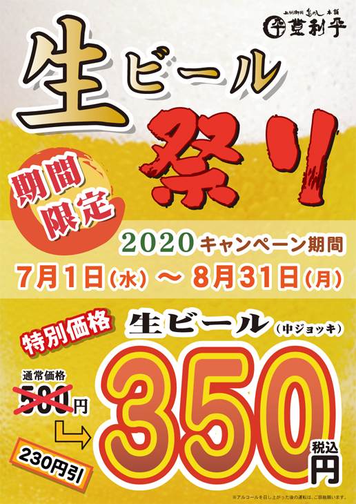 期間中「生ビール〈中ジョッキ〉」、通常価格580円(税込)のところ、
