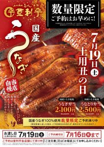 7月19日(土曜日)は、「土用の丑の日」!