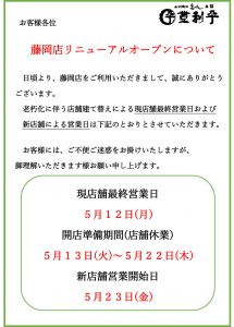 老朽化に伴う店舗建て替えによる現店舗最終営業日および